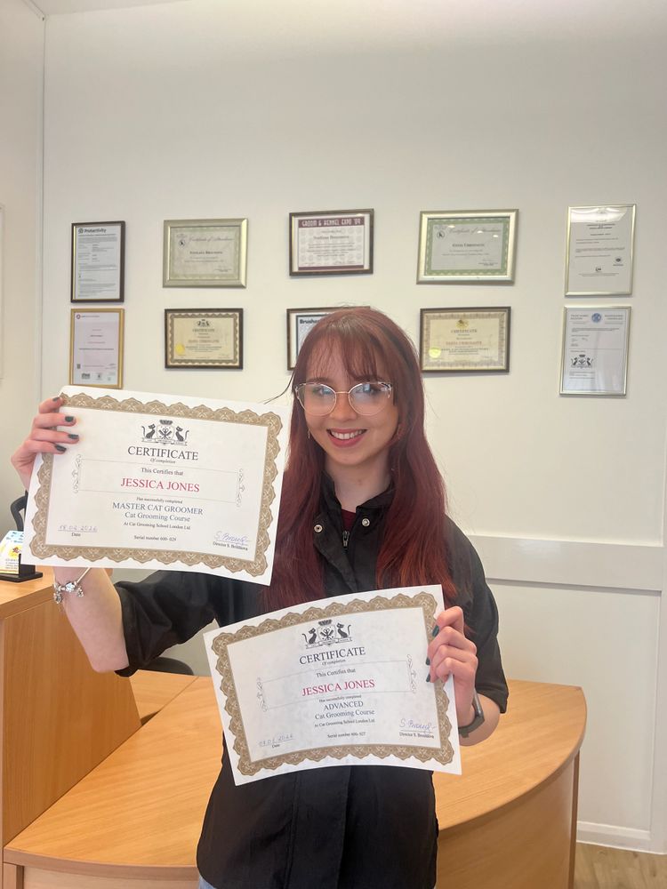 I qualified as a Master Cat Groomer in February 2026, having trained at Svetlana’s Cat Grooming School in London.